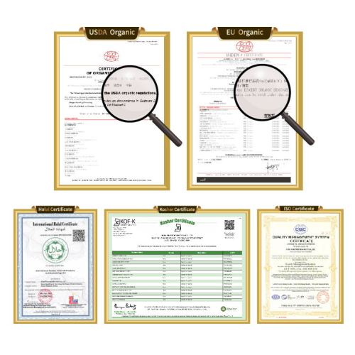 Certificate: ISO9001/HALA/FDA/Kosher